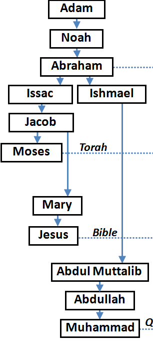 আদম → শীথ → আনুশ → কাইনান → মাহলালীল → ইয়াদ → খানোখ (ইদ্রিস আঃ) → মথূশাল্লাখ → লামেক → নূহ (আঃ)